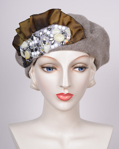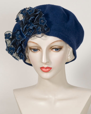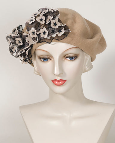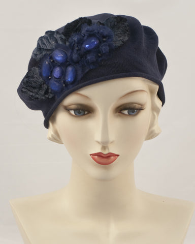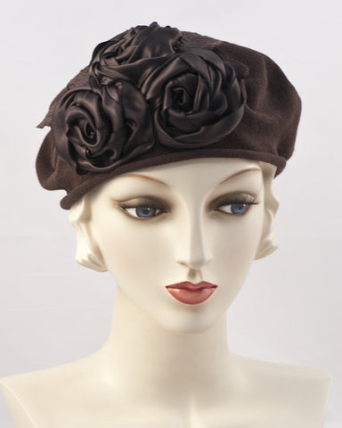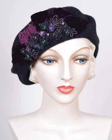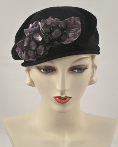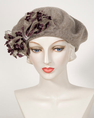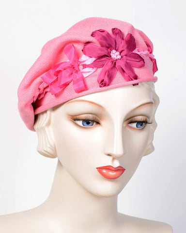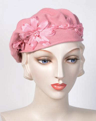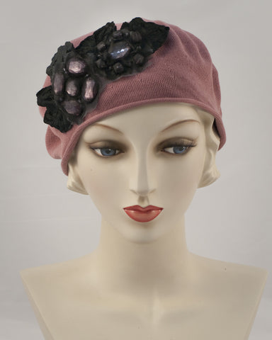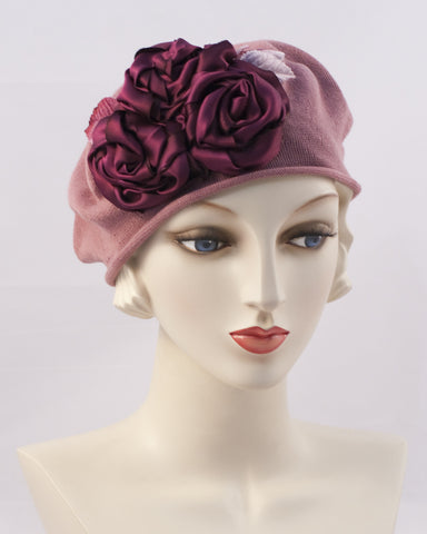 0534SBC Samll Beret, cotton, dusty rose with purple