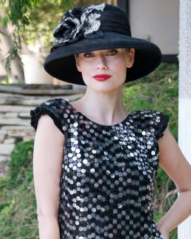 0431AYV Audrey, velour finished felt, black with mixed metals
