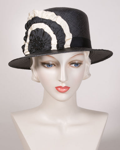 0541LXSP Lexie, sisal crown/sinamay brim, black with ivory