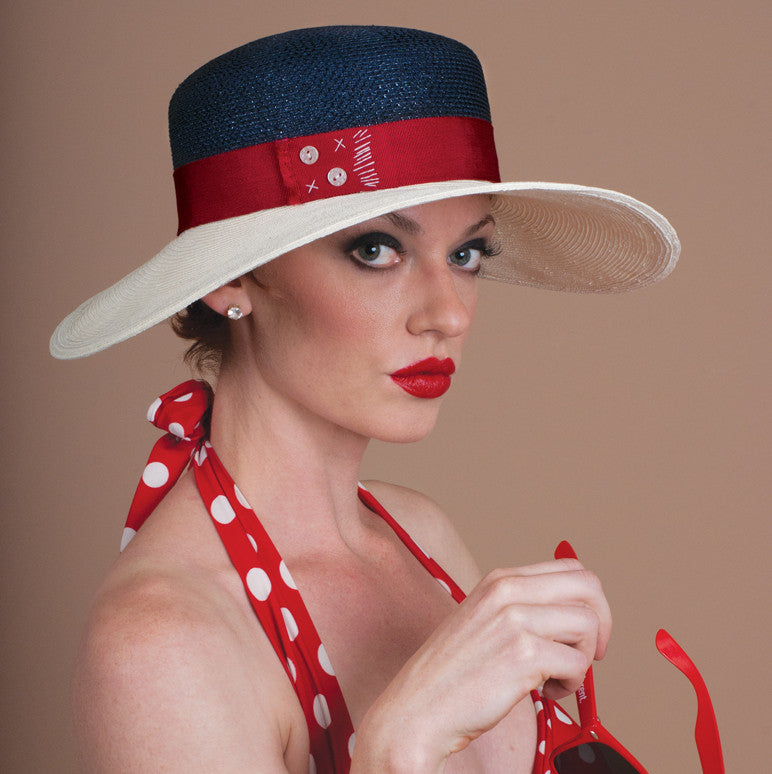 7330BRPL Boater, midnight/cream with cherry Boater, midnight/cream with cherry