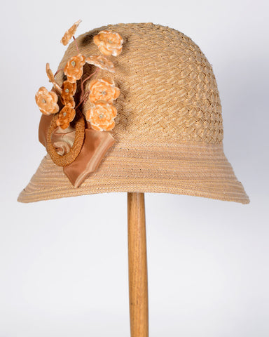 Swiss Pedaline braid hat with mix of textured braids with vintage velvet floral spray & buckle