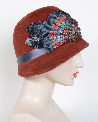 Limited edition embroidered ribbon fan from Louise's trip to India, velvet leaves & rhinestones