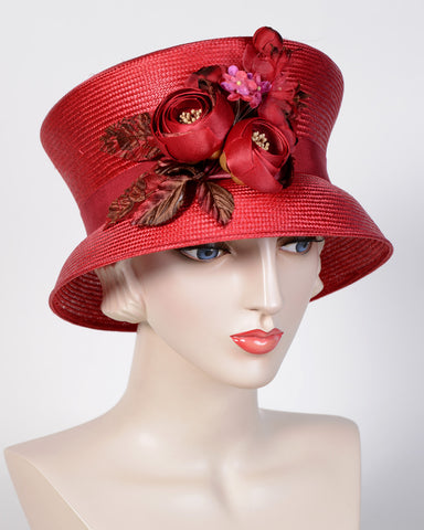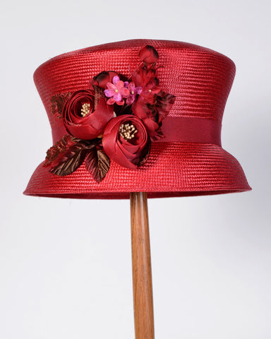 Natural sisal straw hat with rose bud cluster & silk satin band