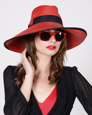 Laguna, scarlet with grey, Panama straw hat with grosgrain band & edge